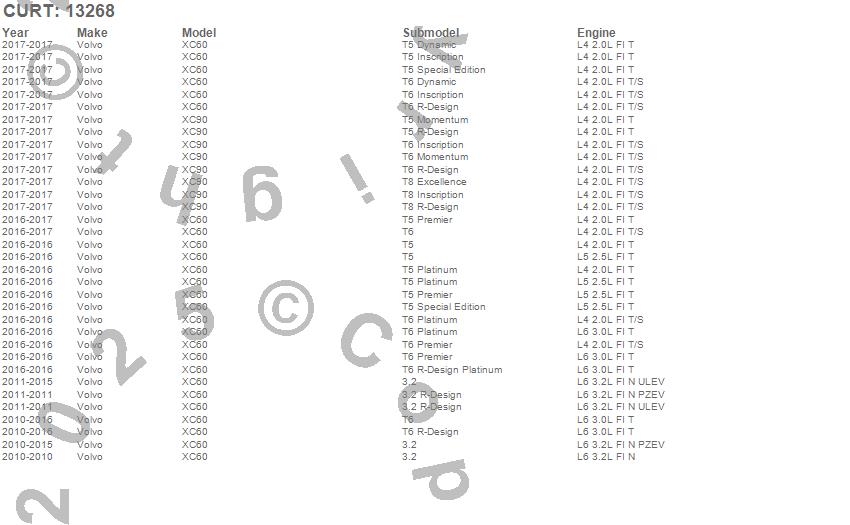 Below is an abbreviated list of applications for the Class III 2 in. Receiver Hitch.XC60, Volvo, 2017, 2016, 2015, 2014, 2013, 2012, 2011, 2010