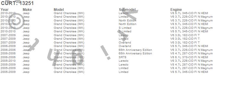 Below is an abbreviated list of applications for the Class III 2 in. Receiver Hitch.Grand Cherokee (WK), Jeep, 2010, 2009, 2008, 2007, 2006, 2005