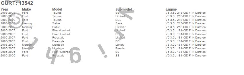 Below is an abbreviated list of applications for the Class III 2 in. Receiver Hitch.Five Hundred, Freestyle, Montego, Sable, Taurus, Ford, Mercury, 2009, 2008, 2007, 2006, 2005