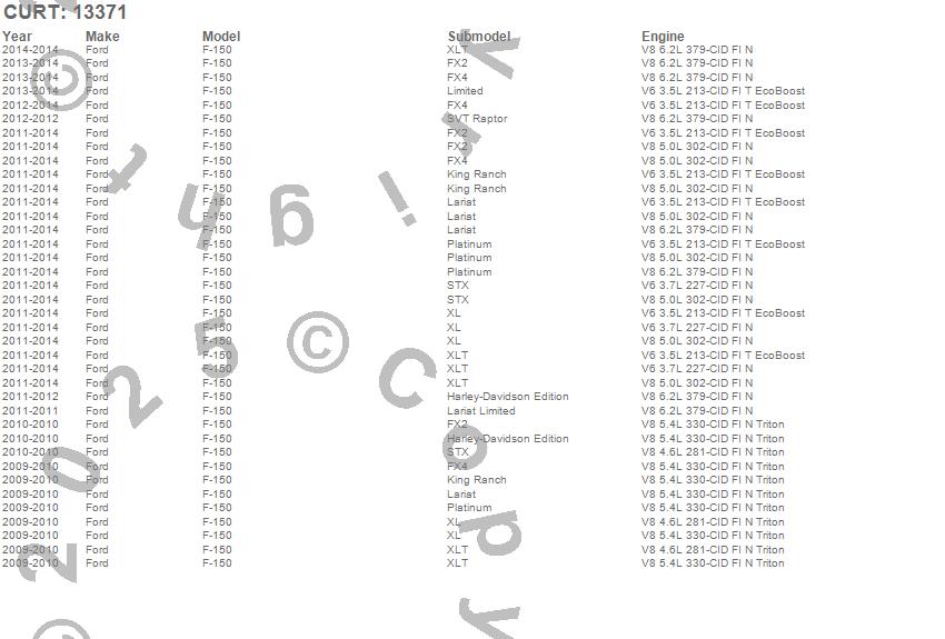 Below is an abbreviated list of applications for the Class III 2 in. Receiver Hitch.F-150, Ford, 2014, 2013, 2012, 2011, 2010, 2009