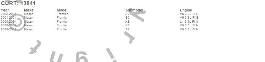 Brand: CURTPart Number: 13841Trailer Hitch Type: Rear - 5000lbs. Gross Trailer Weight - 500lbs. Tongue Weight - 6000lbs. Weight Distributing - 600lbs. Weight Distributing Tongue WeightUPC: 612314138418