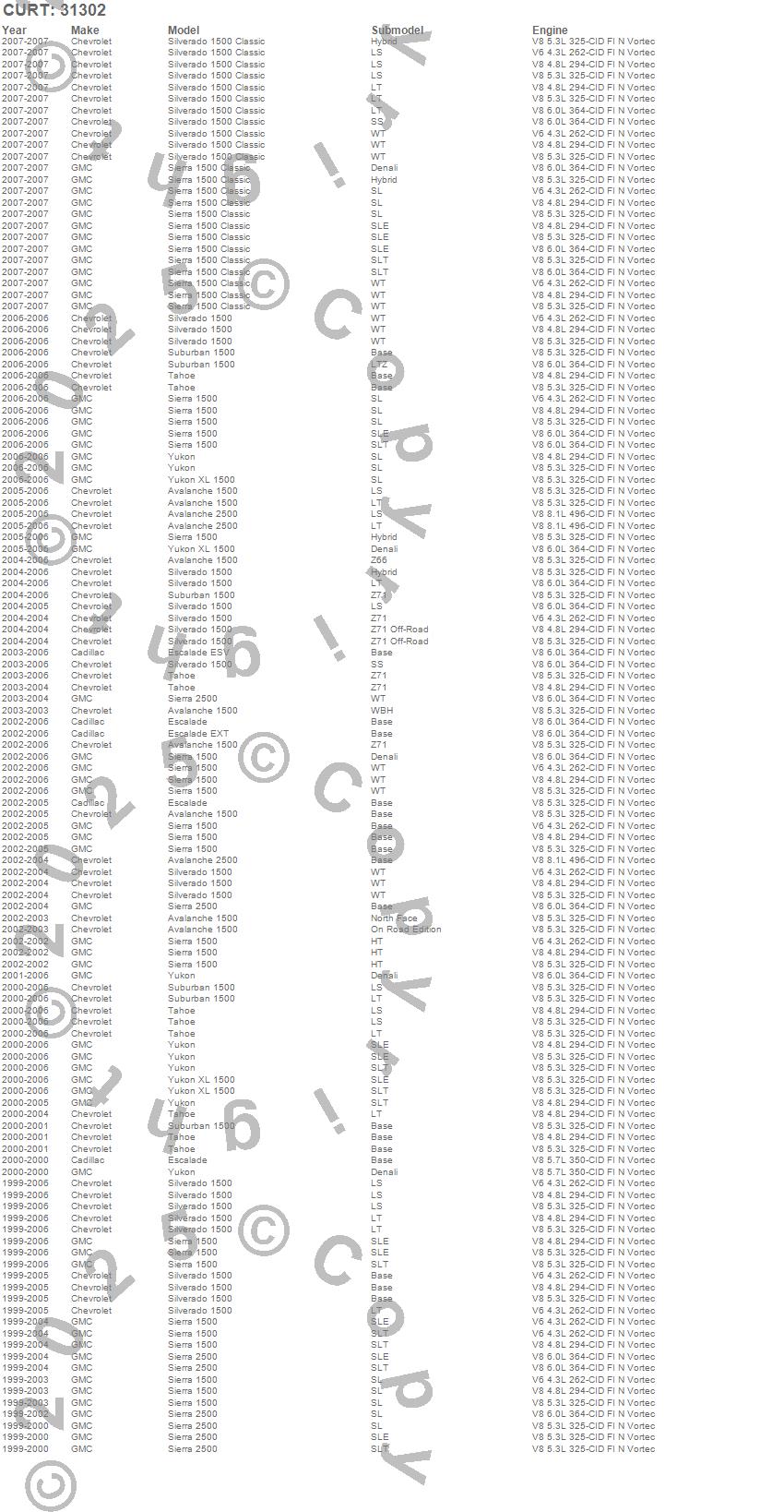 Below is an abbreviated list of applications for the 2 in. Receiver Hitch.Avalanche 1500, Avalanche 2500, Escalade, Escalade ESV, Escalade EXT, Sierra 1500, Sierra 1500 Classic, Sierra 2500, Silverado 1500, Silverado 1500 Classic, Suburban 1500, Tahoe, Yukon, Yukon XL 1500, Cadillac, Chevrolet, GMC, 2007, 2006, 2005