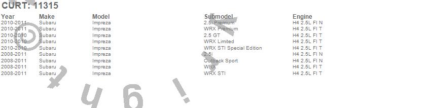 Below is an abbreviated list of applications for the Class I 1.25 in. Receiver Hitch.Impreza, Subaru, 2011, 2010, 2009, 2008