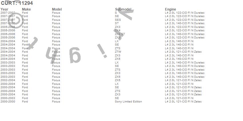 Below is an abbreviated list of applications for the Class I 1.25 in. Receiver Hitch.Focus, Ford, 2007, 2006, 2005, 2004, 2003, 2002, 2001, 2000