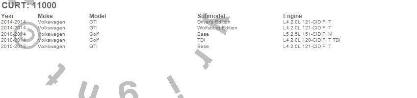 Brand: CURTPart Number: 11000Trailer Hitch Type: Rear - 2000lbs. Gross Trailer Weight - 200lbs. Tongue WeightUPC: 612314010011
