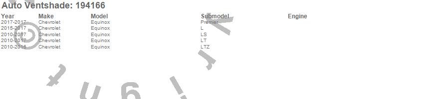 Below is an abbreviated list of applications for the Ventvisor In-Channel Deflector 4 pc..Equinox, Chevrolet, 2017, 2016, 2015, 2014, 2013, 2012, 2011, 2010
