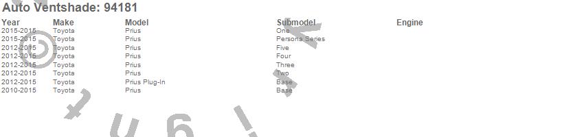 Below is an abbreviated list of applications for the Ventvisor Deflector 4 pc..Prius, Prius Plug-In, Toyota, 2015, 2014, 2013, 2012, 2011, 2010