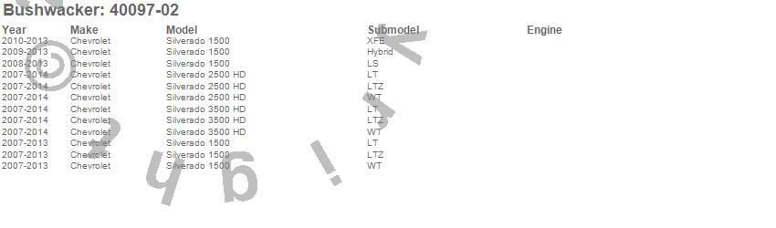 Below is an abbreviated list of applications for the Cut-Out Fender Flares.Silverado 1500, Silverado 2500 HD, Silverado 3500 HD, Chevrolet, 2014, 2013, 2012, 2011, 2010, 2009, 2008, 2007