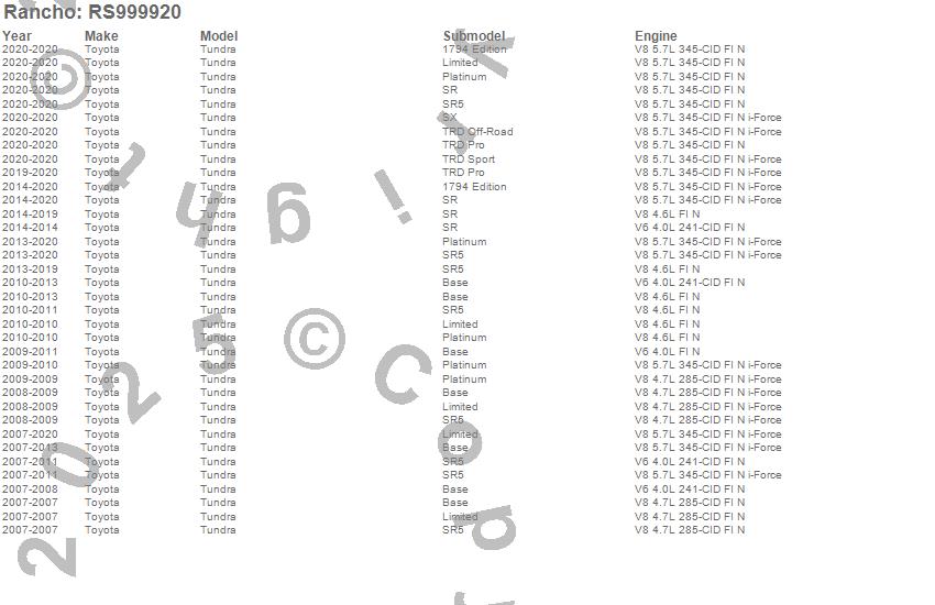 Brand: RanchoPart Number: RS999920Suspension Strut/Coil Spring Assembly Type: 2.25 in. Lift - Compatible With myRIDE Wireless ControllerUPC: 039703001564