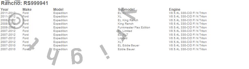 Below is an abbreviated list of applications for the QuickLIFT Quick-Strut.EXPEDITION, FORD, 2012, 2011, 2010, 2009, 2008, 2007