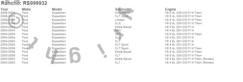 Below is an abbreviated list of applications for the QuickLIFT Quick-Strut.EXPEDITION, FORD, 2006, 2005, 2004, 2003