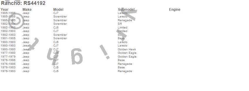 Below is an abbreviated list of applications for the Leaf Spring.CJ5, CJ7, SCRAMBLER, JEEP, 1986, 1985, 1984, 1983, 1982, 1981, 1980, 1979, 1978, 1977, 1976