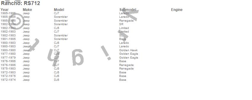 Brand: RanchoPart Number: RS712Axle U-Bolt Kit Type: 1 in. - 2.5 in. LiftUPC: 039703712002