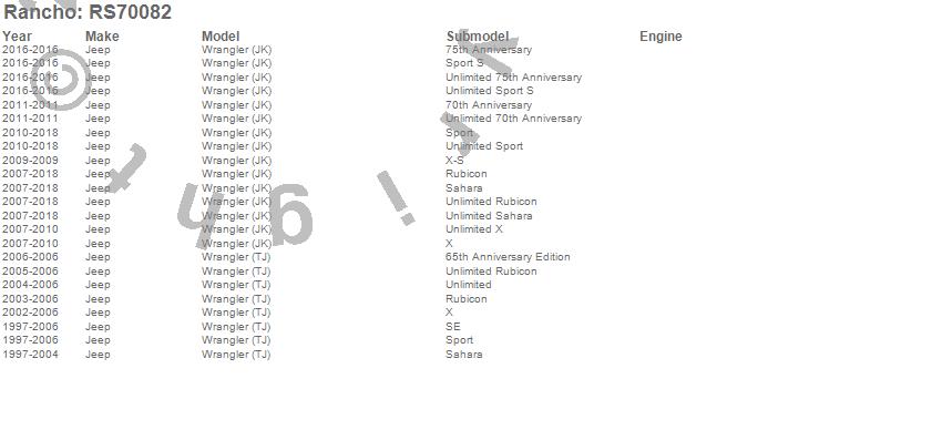 Brand: RanchoPart Number: RS70082Coil Spring Spacer Type: UPC: 039703700825