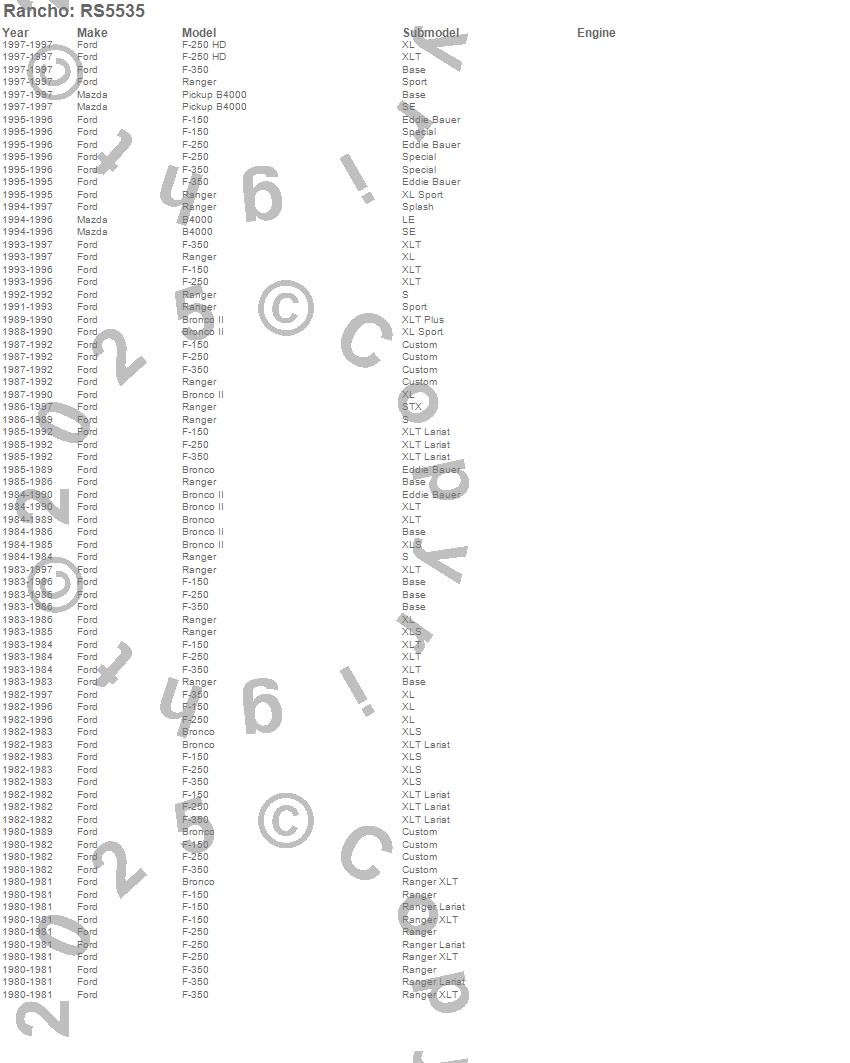 Below is an abbreviated list of applications for the Steering Stabilizer Bracket.B4000, BRONCO, BRONCO II, F-150 PICKUP, F-250 PICKUP, F-350 PICKUP, RANGER, FORD, MAZDA, 1997, 1996, 1995, 1994, 1993, 1992, 1991, 1990, 1989, 1988, 1987