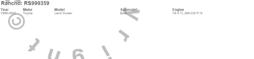 Below is an abbreviated list of applications for the Shock Absorber.LAND CRUISER, TOYOTA, 2002, 2001, 2000, 1999, 1998