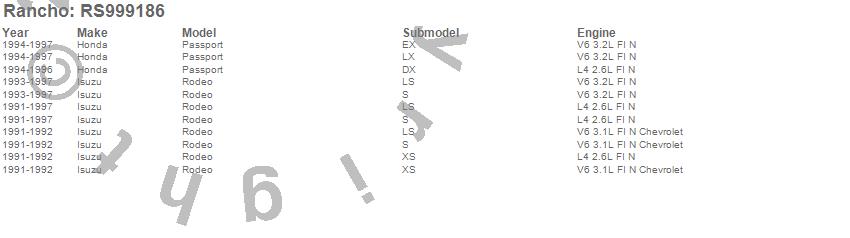 Below is an abbreviated list of applications for the Shock Absorber.ODYSSEY, PASSPORT, RODEO, HONDA, ISUZU, 1997, 1996, 1995, 1994, 1993, 1992, 1991