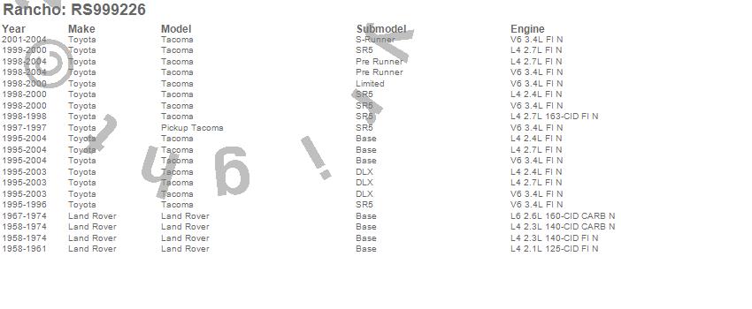 Buy this Shock Absorber Rancho RS999226 RS9000XL Series here at SVCustoms.com an authorized Rancho Shock Absorber dealer and distributor.