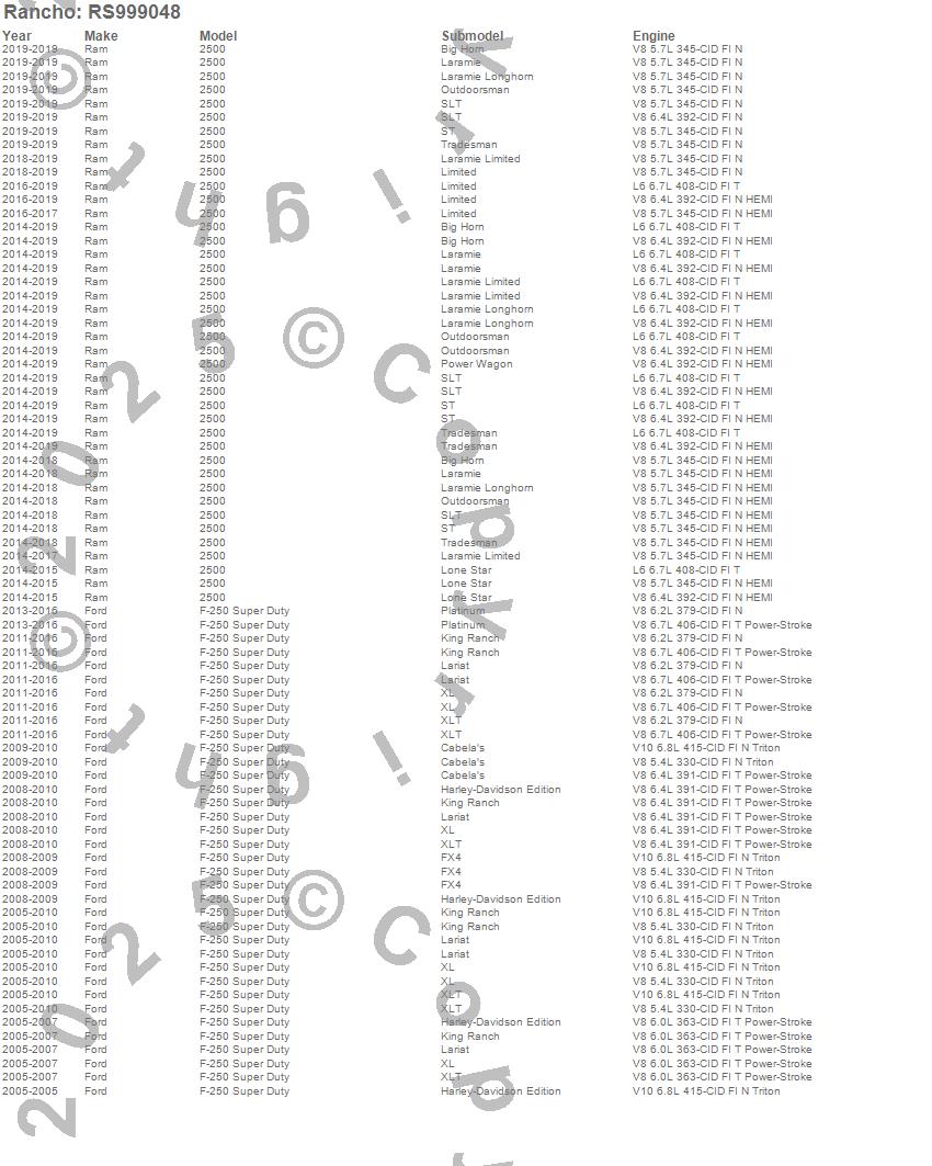 Below is an abbreviated list of applications for the Shock Absorber.F-250 SUPER DUTY PICKUP, F-250 SUPER DUTY PICKUP (Canadian), F-350 SUPER DUTY PICKUP, F-350 SUPER DUTY PICKUP (Canadian), FORD, 2013, 2012, 2011, 2010, 2009, 2008, 2007, 2006, 2005