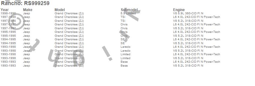Below is an abbreviated list of applications for the Shock Absorber.GRAND CHEROKEE (ZJ), JEEP, 1998, 1997, 1996, 1995, 1994, 1993