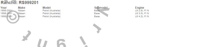 Below is an abbreviated list of applications for the Shock Absorber.PATROL (Australia), NISSAN, 2001, 2000, 1999, 1998, 1994, 1993, 1992, 1991, 1990, 1989