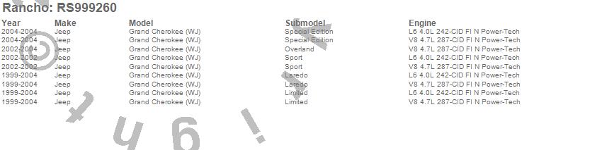 Below is an abbreviated list of applications for the Shock Absorber.GRAND CHEROKEE (WJ), JEEP, 2004, 2003, 2002, 2001, 2000, 1999