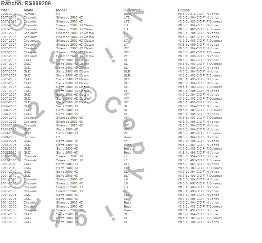 Below is an abbreviated list of applications for the Shock Absorber.H2, SIERRA 2500 HD, SIERRA 2500 HD CLASSIC, SILVERADO 2500 HD, SILVERADO 2500 HD CLASSIC, CHEVROLET, GMC, HUMMER, 2010, 2009, 2008, 2007, 2006, 2005, 2004, 2003, 2002, 2001