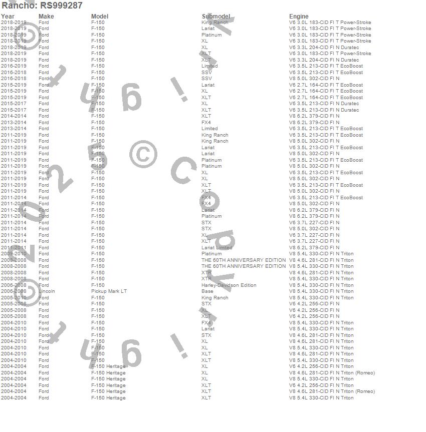 Below is an abbreviated list of applications for the Shock Absorber.F-150 PICKUP, MARK LT, FORD, LINCOLN, 2013, 2012, 2011, 2010, 2009, 2008, 2007, 2006, 2005, 2004