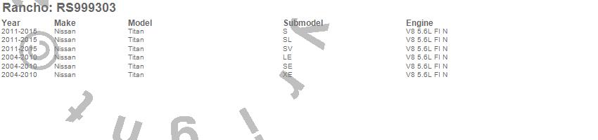 Below is an abbreviated list of applications for the Shock Absorber.TITAN, NISSAN, 2012, 2011, 2010, 2009, 2008, 2007, 2006, 2005, 2004