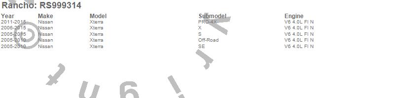 Below is an abbreviated list of applications for the Shock Absorber.XTERRA, NISSAN, 2012, 2011, 2010, 2009, 2008, 2007, 2006, 2005