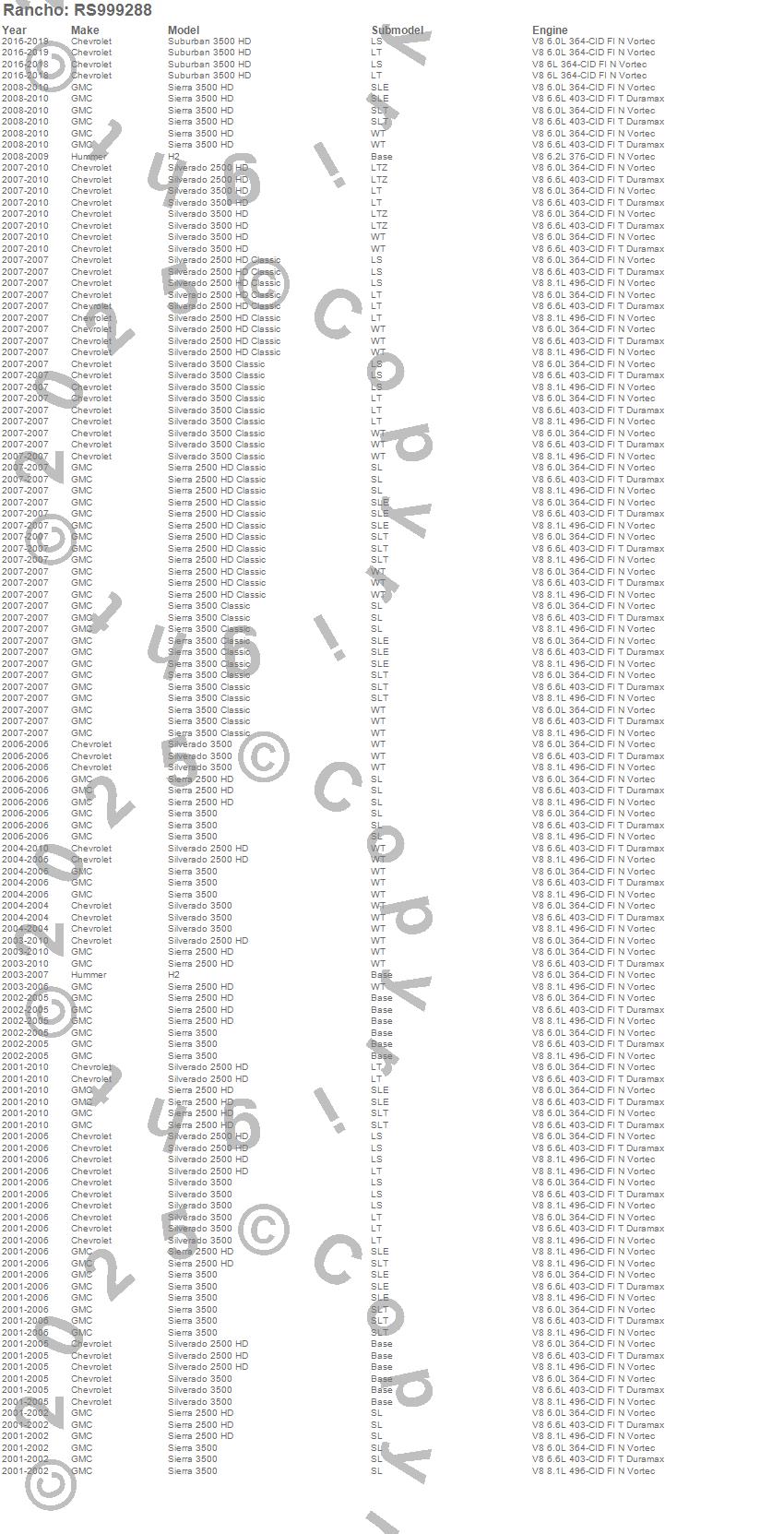 Below is an abbreviated list of applications for the Shock Absorber.H2, SIERRA 2500 HD, SIERRA 2500 HD CLASSIC, SIERRA 3500, SIERRA 3500 CLASSIC, SILVERADO 2500 HD, SILVERADO 2500 HD CLASSIC, SILVERADO 3500, SILVERADO 3500 (Canadian), SILVERADO 3500 CLASSIC, CHEVROLET, GMC, HUMMER, 2010, 2009, 2008, 2007, 2006, 2005, 2004