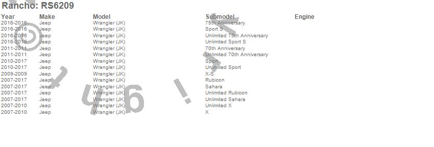 Brand: RanchoPart Number: RS6209Differential Cover Type: UPC: 039703062091