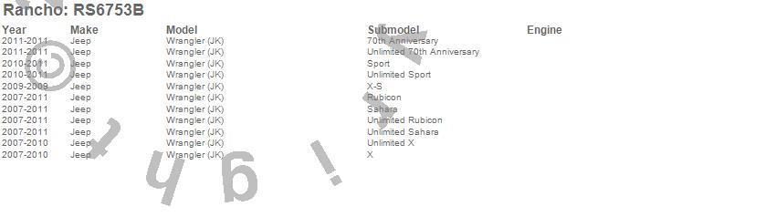 Below is an abbreviated list of applications for the Sway Bar Endlink.WRANGLER, JEEP, 2011, 2010, 2009, 2008, 2007