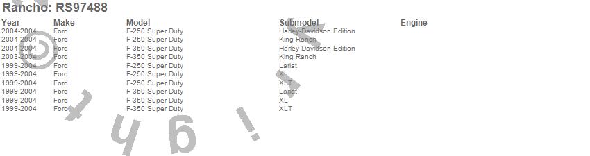 Below is an abbreviated list of applications for the Steering Stabilizer Single Kit.F-250 SUPER DUTY PICKUP, F-350 SUPER DUTY PICKUP, FORD, 2004, 2003, 2002, 2001, 2000, 1999