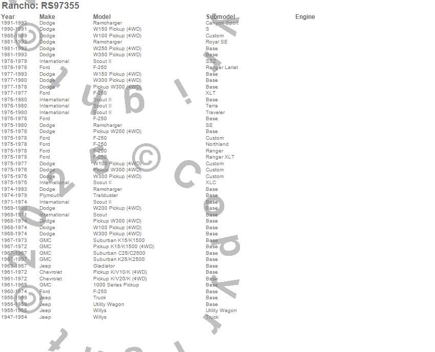 Below is an abbreviated list of applications for the Steering Stabilizer Single Kit.1000 SERIES PICKUP, F-250 PICKUP, GLADIATOR, K10 PICKUP, K15/K1500 PICKUP, K20 PICKUP, RAMCHARGER, SCOUT, SCOUT II, TRAILDUSTER, W100 PICKUP, W150 PICKUP, W200 PICKUP, W250 PICKUP, W300 PICKUP, W350 PICKUP, CHEVROLET, DODGE, FORD, GMC