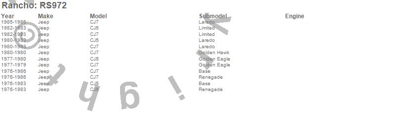Brand: RanchoPart Number: RS972Leaf Spring Bushing Type: Front And RearUPC: 039703972000