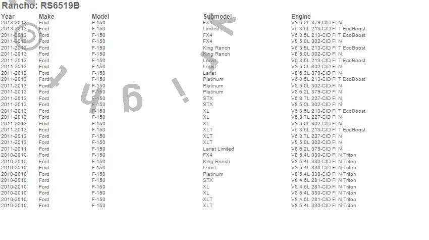 Below is an abbreviated list of applications for the Primary Suspension System.F-150 PICKUP, FORD, 2013, 2012, 2011, 2010