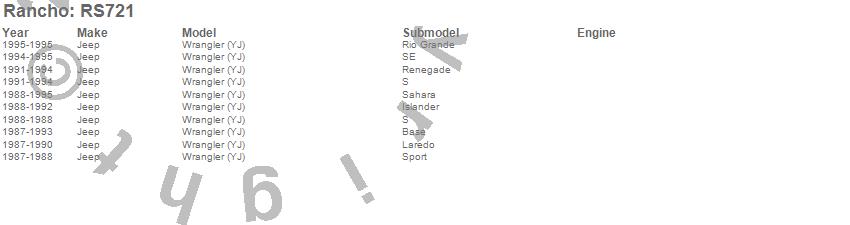 Below is an abbreviated list of applications for the Axle U-Bolt Kit Rear.WRANGLER, JEEP, 1995, 1994, 1993, 1992, 1991, 1990, 1989, 1988, 1987