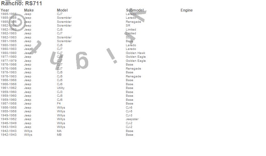 Brand: RanchoPart Number: RS711Axle U-Bolt Kit Type: 1 in. - 2.5 in. Lift - Incl. UBolts - 2.5 Degree Shims - 2 Degree Shims - HardwareUPC: 039703711005