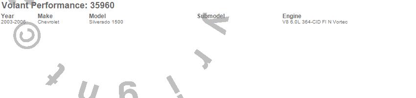 Brand: Volant PerformancePart Number: 35960Engine Air Intake Scoop Type: Silicon Connectors/Stainless Steel Clamps - Mounts In Tow Hook Location - For Track Use Only - For Use w/[PN15153]UPC: 831362005378