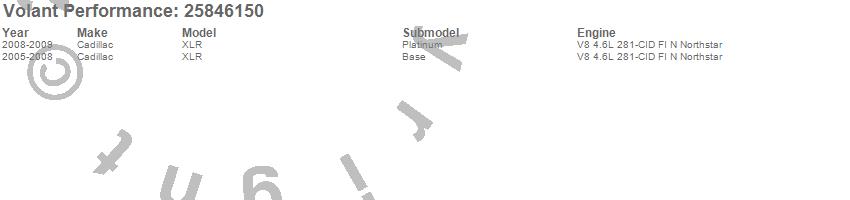 Below is an abbreviated list of applications for the Cold Air Intake Kit.XLR, Cadillac, 2009, 2008, 2007, 2006, 2005