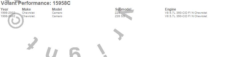 Below is an abbreviated list of applications for the Cold Air Intake Kit.Camaro, Chevrolet, 2002, 2001, 2000, 1999, 1998