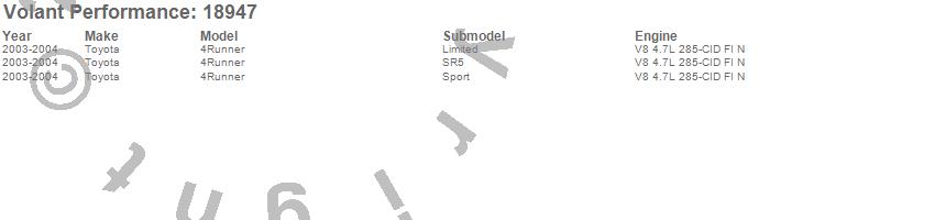 Below is an abbreviated list of applications for the Cold Air Intake Kit.4Runner, Toyota, 2004, 2003