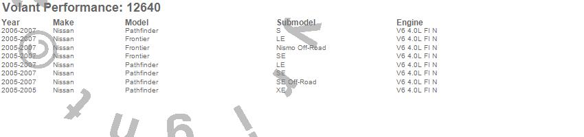 Below is an abbreviated list of applications for the Cold Air Intake Kit.Frontier, Pathfinder, Nissan, 2007, 2006, 2005