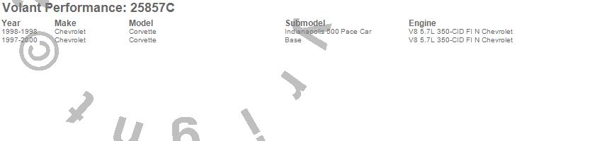 Below is an abbreviated list of applications for the Cold Air Intake Kit.Corvette, Chevrolet, 2000, 1999, 1998, 1997