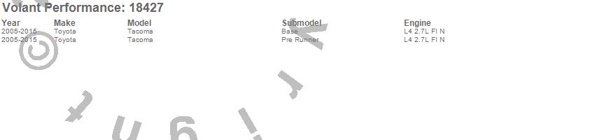 Below is an abbreviated list of applications for the Cold Air Intake Kit.Tacoma, Toyota, 2015, 2014, 2013, 2012, 2011, 2010, 2009, 2008, 2007, 2006, 2005