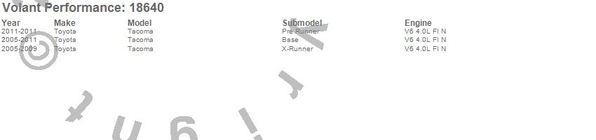 Below is an abbreviated list of applications for the Cold Air Intake Kit.Tacoma, Toyota, 2011, 2010, 2009, 2008, 2007, 2006, 2005