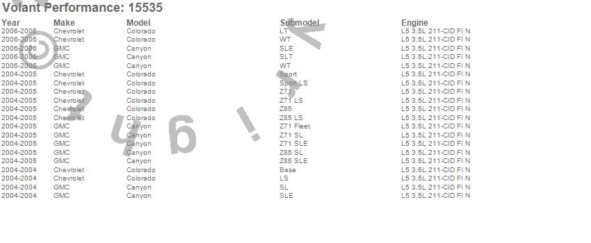 Below is an abbreviated list of applications for the Cold Air Intake Kit.Canyon, Colorado, Chevrolet, GMC, 2006, 2005, 2004