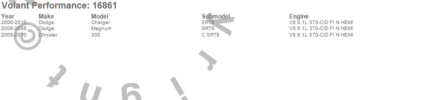 Below is an abbreviated list of applications for the Cold Air Intake Kit.300, Charger, Magnum, Chrysler, Dodge, 2010, 2009, 2008, 2007, 2006, 2005