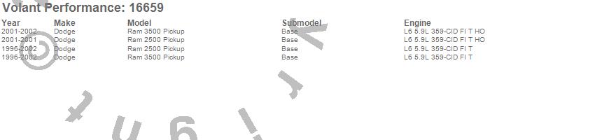 Below is an abbreviated list of applications for the Cold Air Intake Kit.Ram 2500, Ram 3500, Dodge, 2002, 2001, 2000, 1999, 1998, 1997, 1996